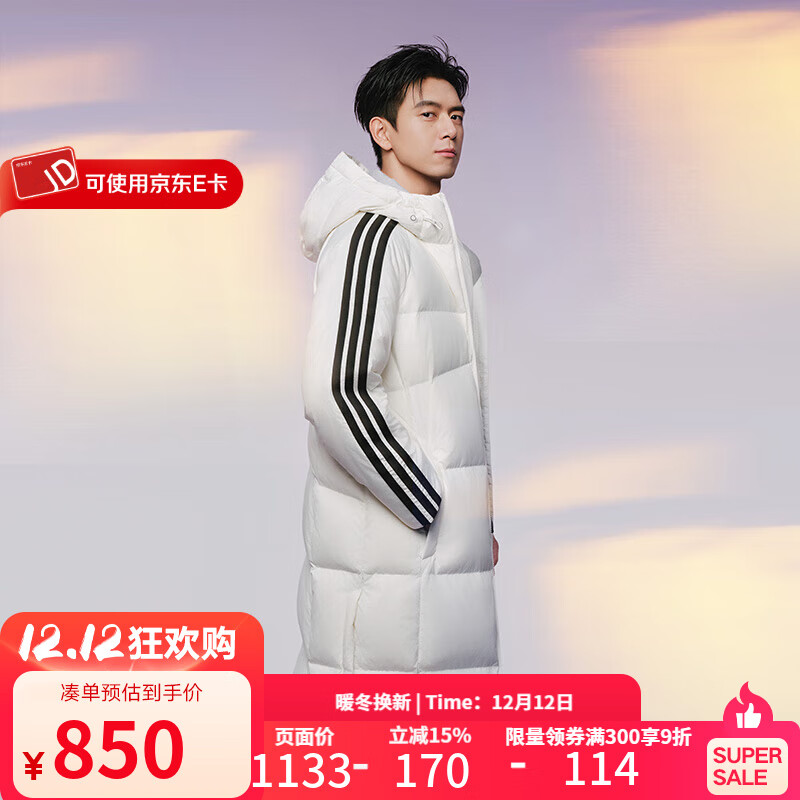 阿迪达斯(adidas) 长款羽绒服男款女款 25冬季防寒保暖运动休闲连帽过膝鸭绒服外套 KC2497 白色/男女同款 M