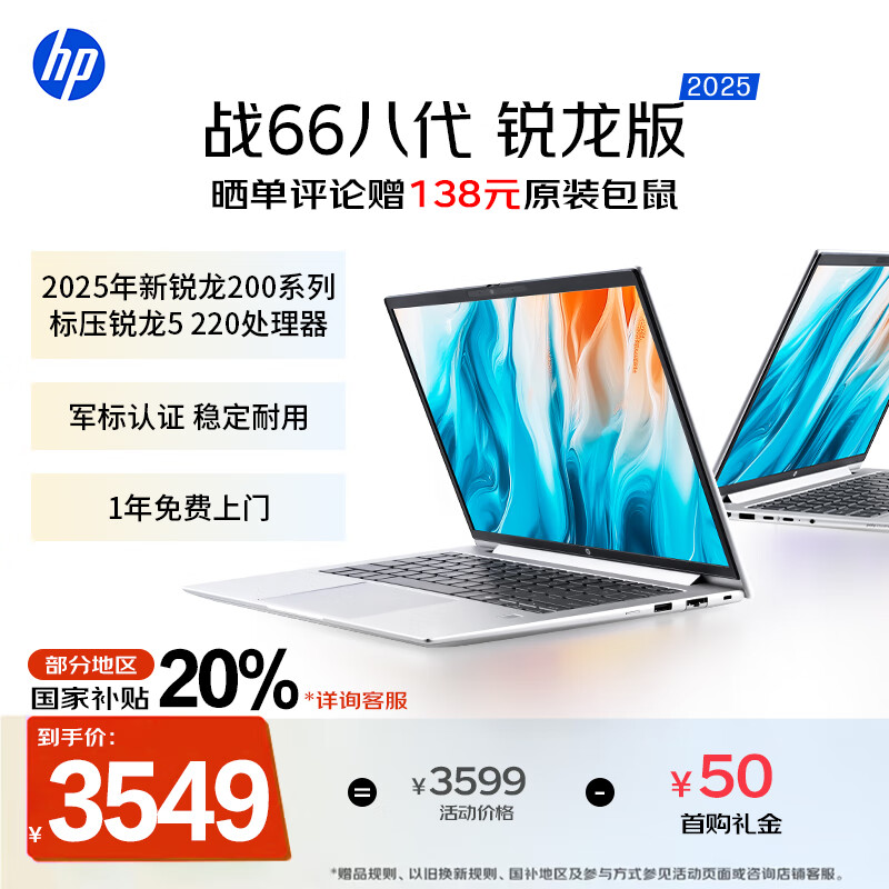 惠普(HP)战66八代 14英寸轻薄笔记本电脑 新200系列 可选2.5K/锐龙7/32G 军标认证 一年上门 战AI 【热卖】FHD/新锐龙5/16G/512G