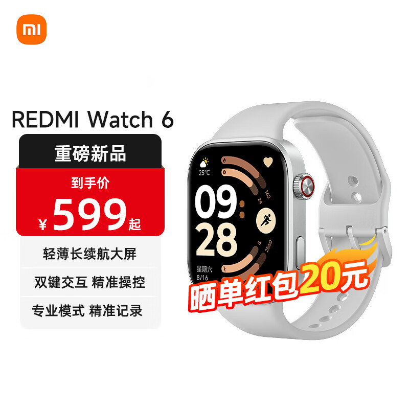小米(MI)REDMI Watch 6 澎湃OS 3 心率血氧监测 蓝牙通话 红米手表6 智能手表 小米汽车 【划算套餐】皎月银