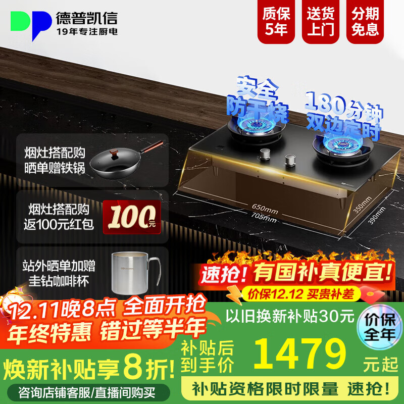 德普凯信2025年新品灶具D5PRO纳米科技嵌入式童锁燃气灶双边定时烟灶联动5200W大火力脉冲式电子点火防干烧 【定时防干烧】D5PRO天然气 5.2KW