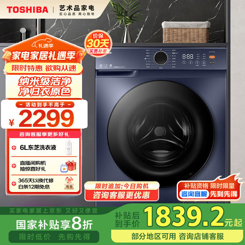 东芝(TOSHIBA)滚筒洗衣机全自动家用 10公斤大容量 UFB超微泡 1.12洗净比 除菌螨 微缝自由嵌 DG-10T12BG