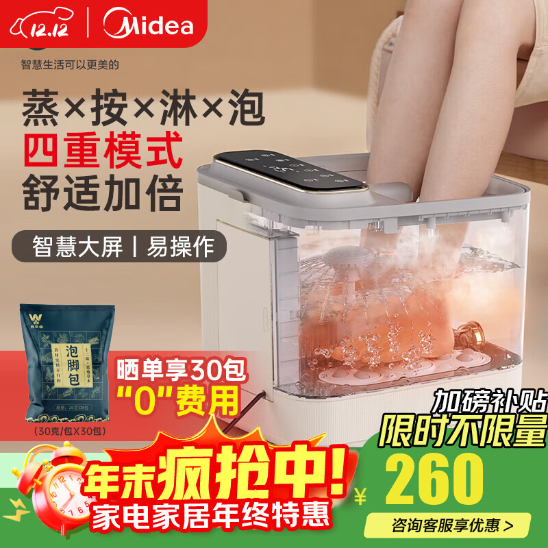 美的(Midea)自动按摩泡脚桶一体机足浴盆家用智能恒温电动加热触控养生洗脚盆男女士送长辈生日节日礼物ZL302 蒸×按×淋×泡丨四重模式杀菌泡脚桶