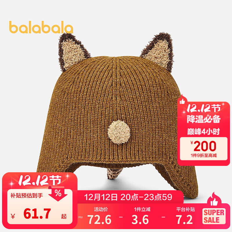 巴拉巴拉(BALABALA)巴拉巴拉【商场同款】儿童帽子男女童护耳帽保暖立体造型时尚可爱 咖色调00355 100cm(适用头围49cm,18-36月)