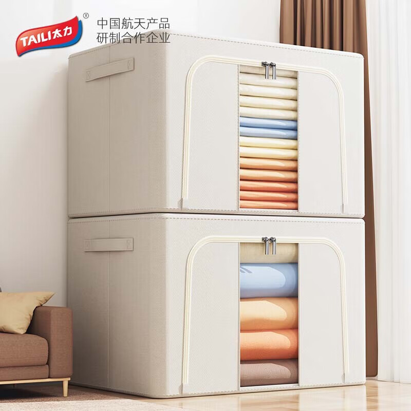 太力收纳箱66L牛津布收纳箱1只装衣服棉被布艺整理箱棉麻折叠储物箱 牛津布收纳箱66L