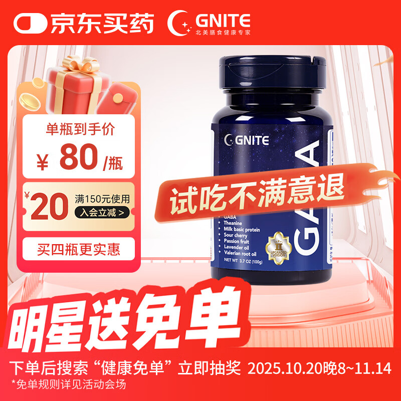 GNITE晚安二代小分子GABA睡眠软糖60粒氨基丁酸非褪黑素软糖