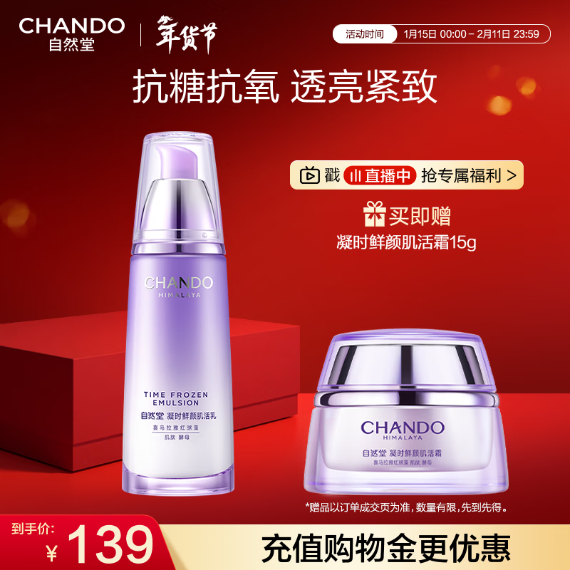 自然堂【龚俊同款】凝时鲜颜肌活乳液120ml补水保湿淡化细纹护肤品女