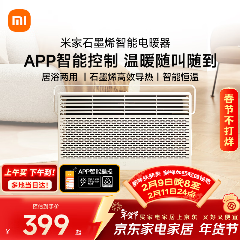米家小米智能石墨烯取暖器欧式快热炉电暖器六档调温IPX4防水电热取暖器家用KRDNQ05ZM