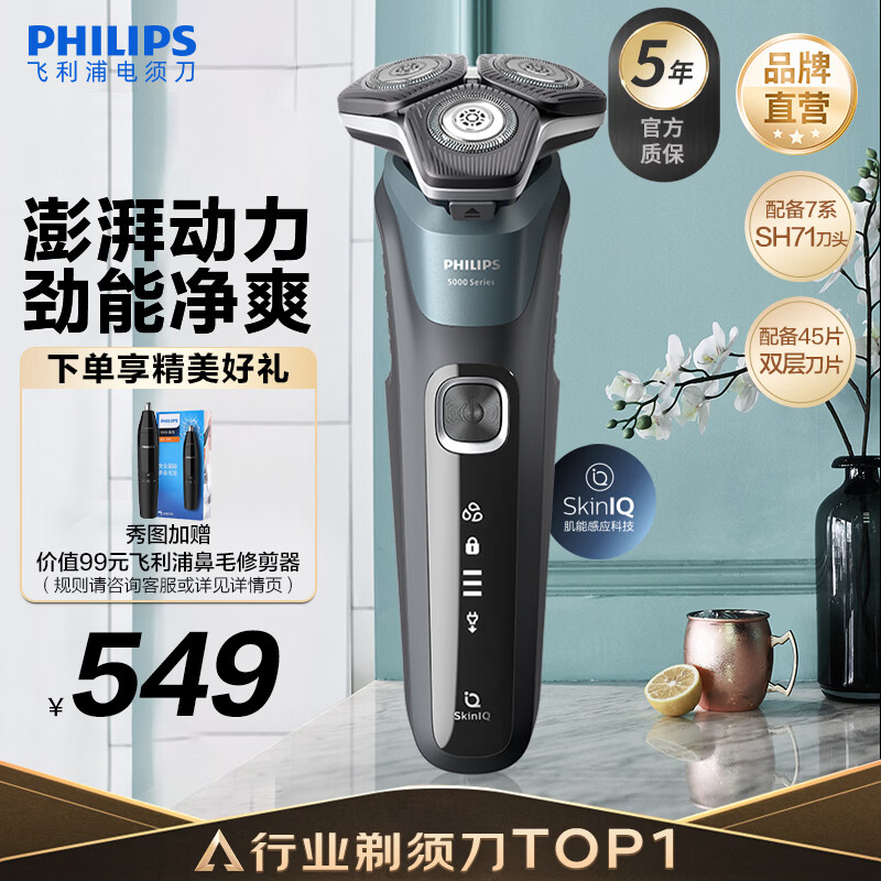飞利浦剃须刀电动【价低头部】官方旗舰新款黑蜂巢5系旗舰款剃胡刀刮胡刀S5831同款三刀头正品智能 旗舰款S5832【商务蓝】