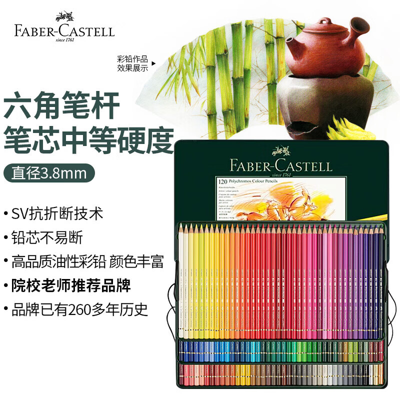 辉柏嘉(Faber-castell)油性彩色铅笔专业手绘艺术家大师级绘画套装120色进口绿铁盒装110011【梵高认证】