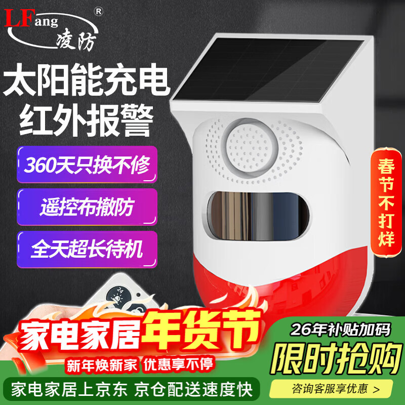 凌防(LFang)CT80-YK 户外人体感应红外防盗声光报警器太阳能充电货车盲区报警