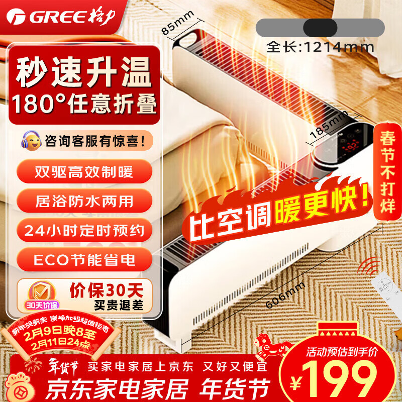 格力(GREE)【180°任意折叠】取暖器新款家用电暖器浴室暖风机暖脚遥控节能省电踢脚线全屋送暖 NJE-J6020B