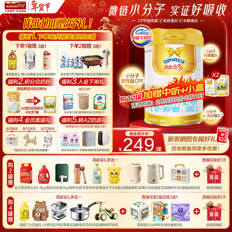 能立多(能力多)幼儿进口配方牛奶粉3段(12-36个月)860g*1【买6送1中听】