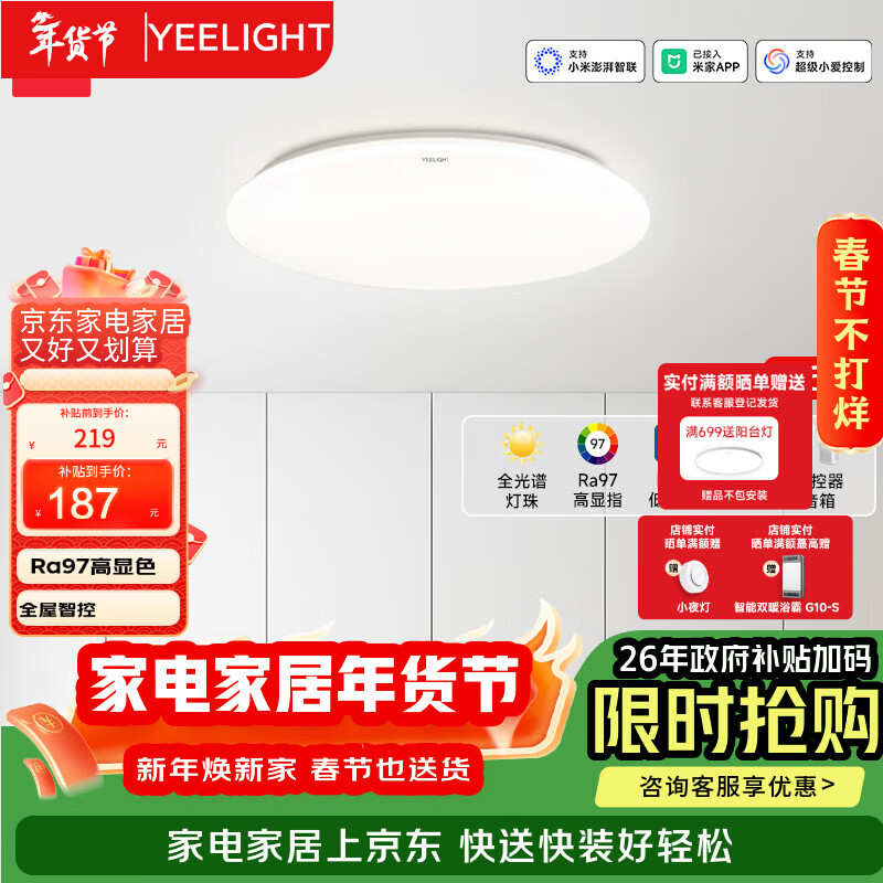 Yeelight易来led全光谱护眼吸顶灯客厅超薄智能低蓝光歆月卧室【包安装】