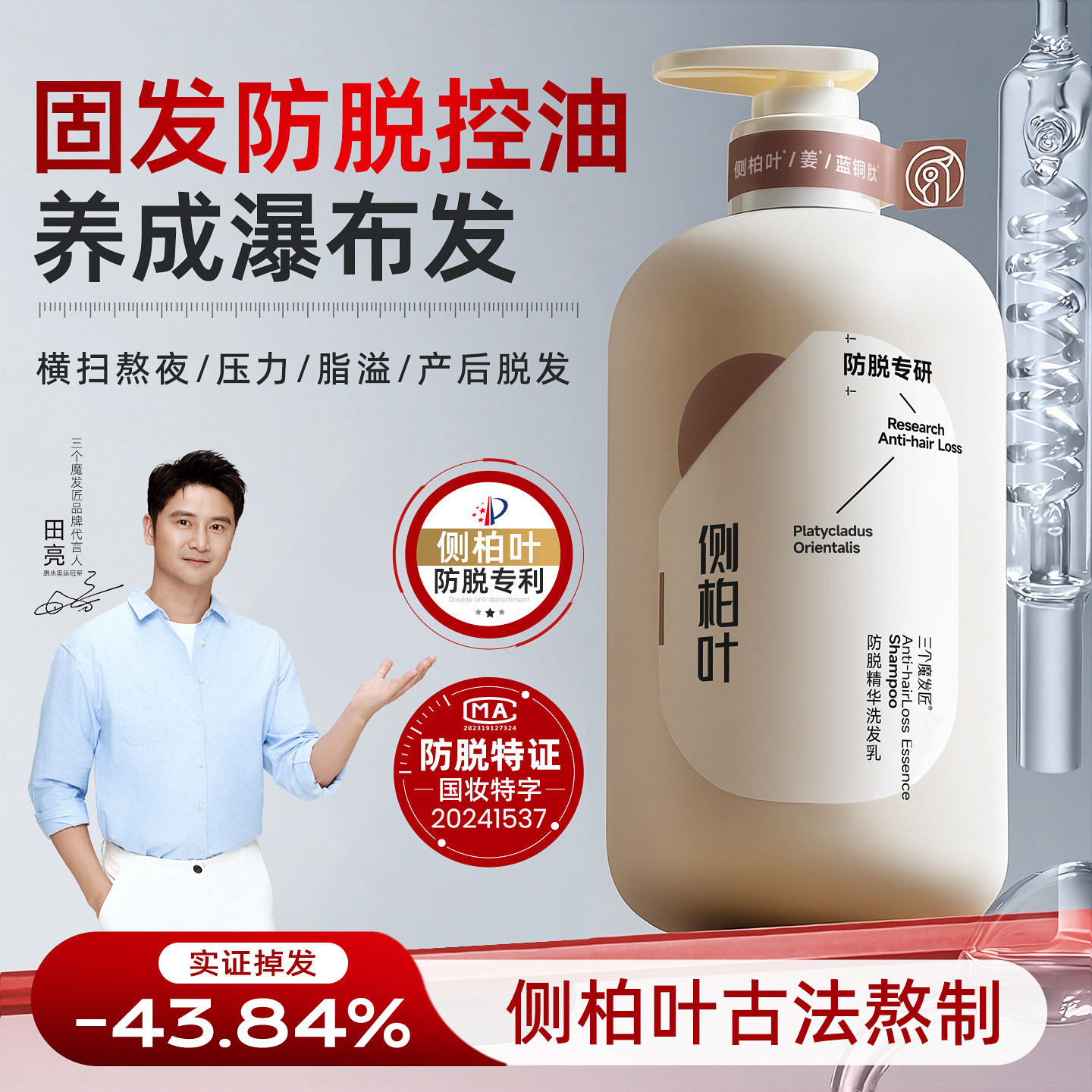EHD防脱洗发水控油蓬松去屑育勇辉生官方正品固发侧柏叶洗头露膏
