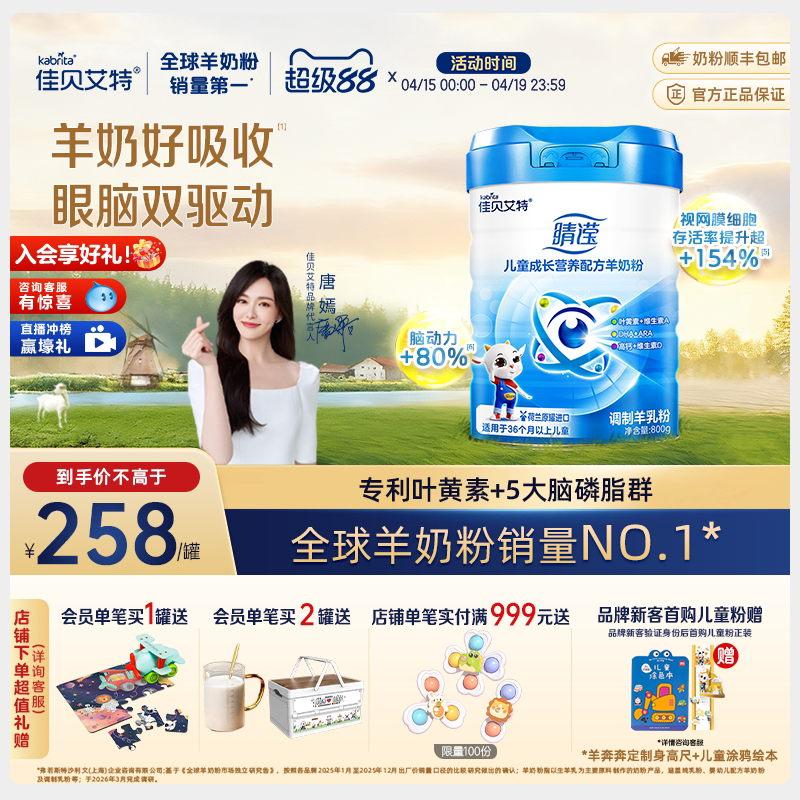 新国标 佳贝艾特4段睛滢800g*1罐官方正品儿童学生成长配方羊奶粉