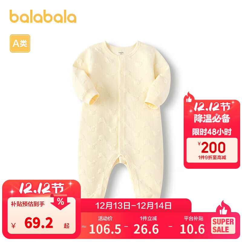 巴拉巴拉童装婴儿连体衣新生儿宝宝满月爬服夹棉加厚萌趣男童女童婴童衣服 奶黄30102 80cm