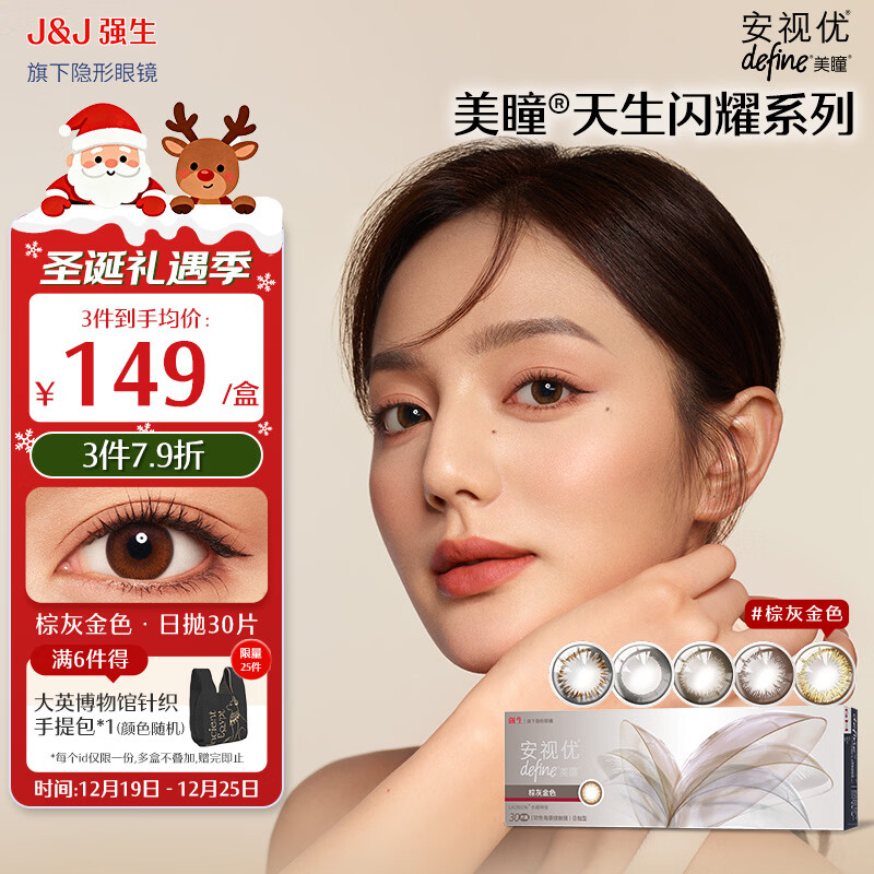 强生安视优隐形眼镜美瞳天生闪耀系列日抛保湿隐形眼镜日抛30片装 棕灰金色 晶致 275度