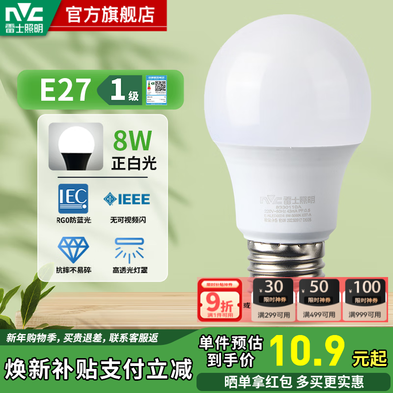 雷士照明旗舰店手机扫码,领券购买