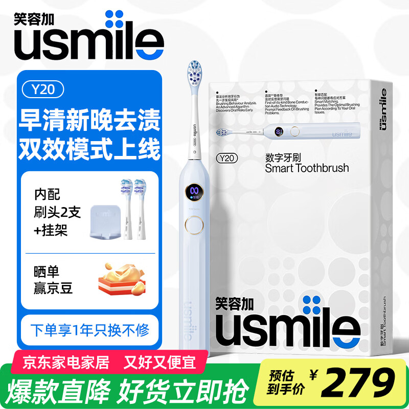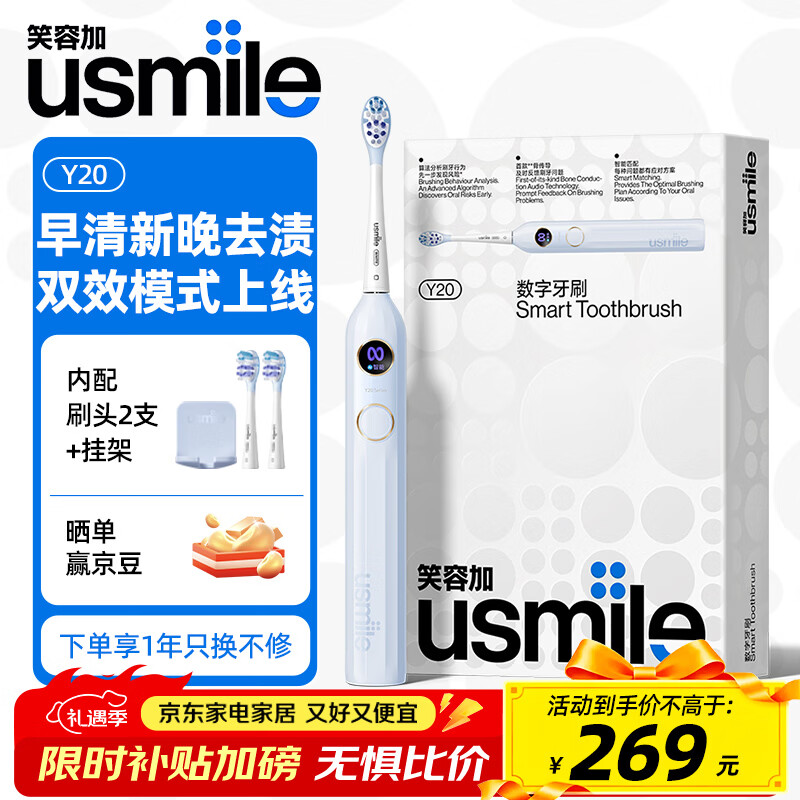 usmile笑容加电动牙刷Y20蓝牙APP骨传导语音智能提醒成人新婚生日情侣送男女朋友礼物情人节元旦新年礼物 【骨传导语音提醒】Y20 净蓝