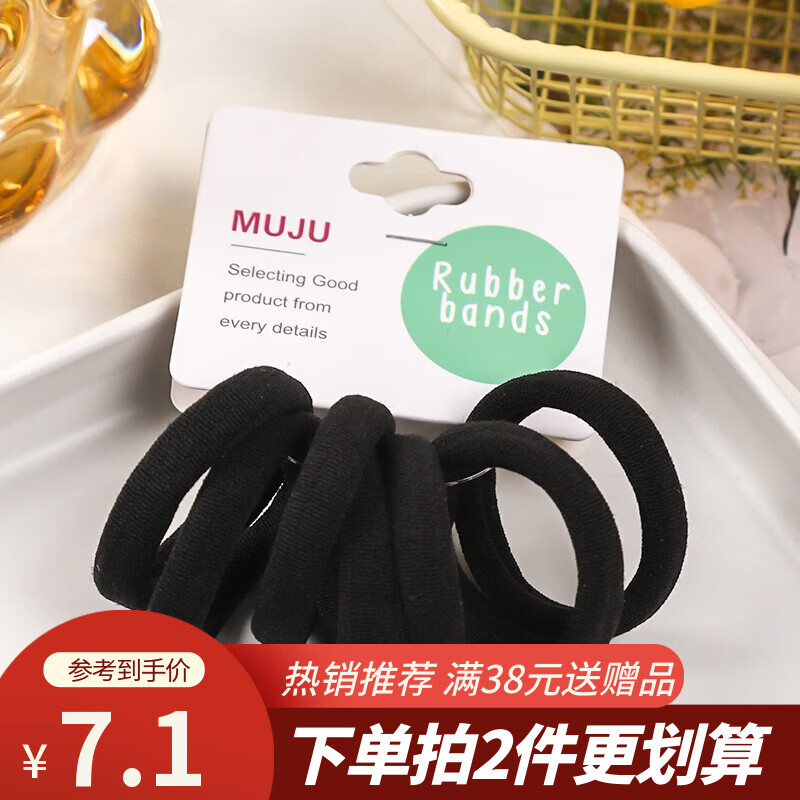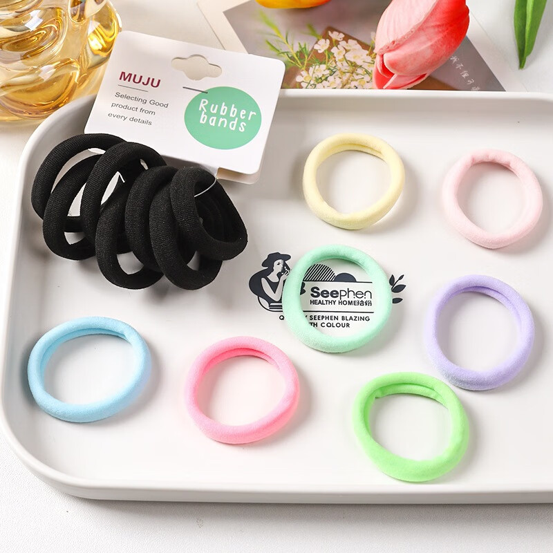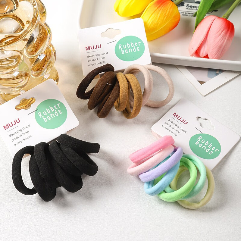高弹力中号无接缝发圈超值7条卡装皮筋百搭高马尾头绳无痕发绳 1#黑色(7条装)