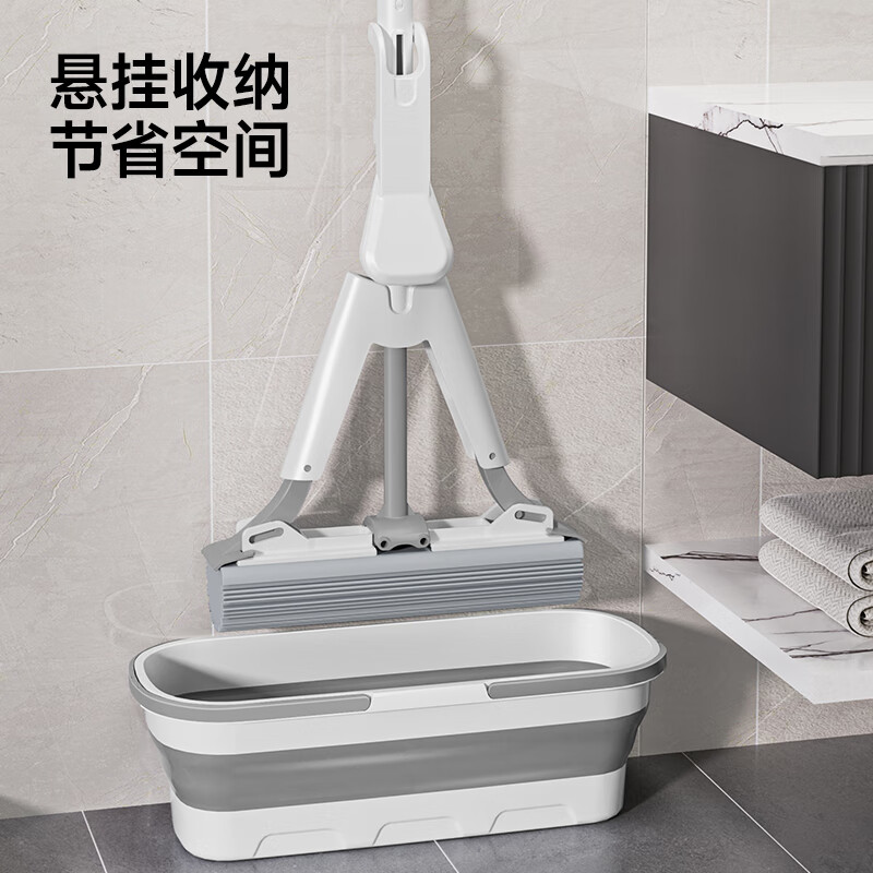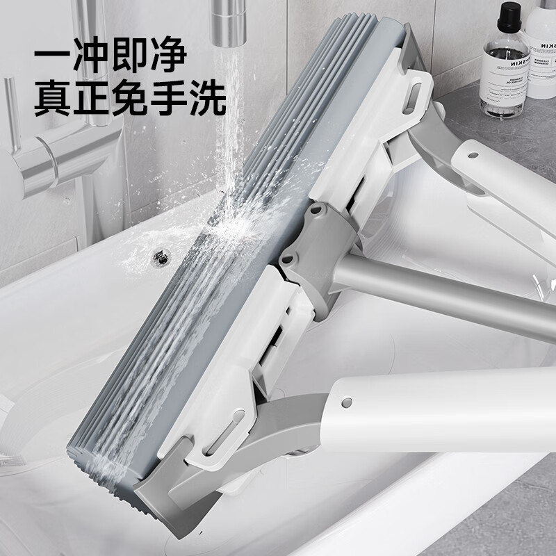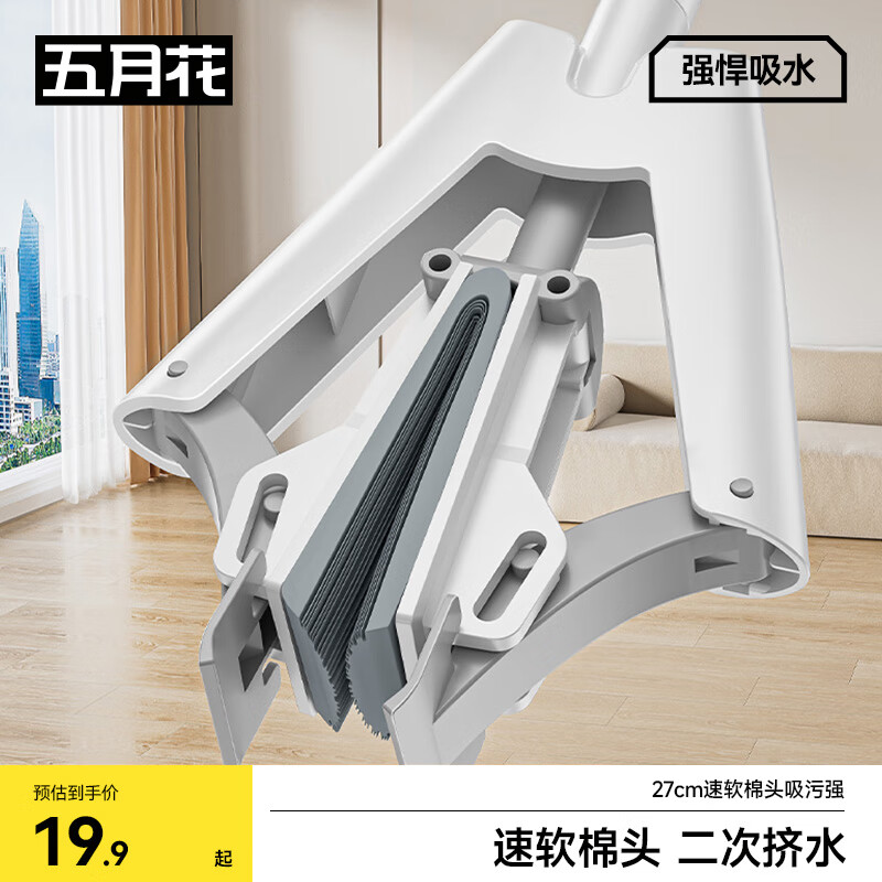 五月花海绵拖把对折胶棉拖把 吸水拖布2025免手洗懒人墩布家用一拖净 27cm对折挤水1配头