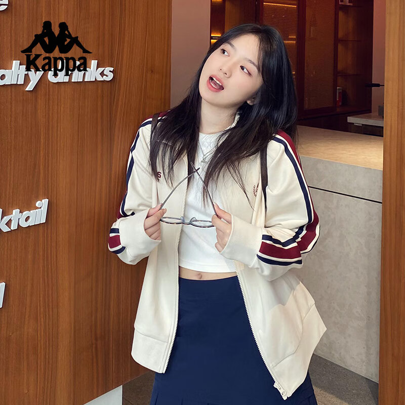 卡帕(Kappa)背靠背运动外套女款2025新款复古针织撞色开衫卫衣女潮K0E62WK01D