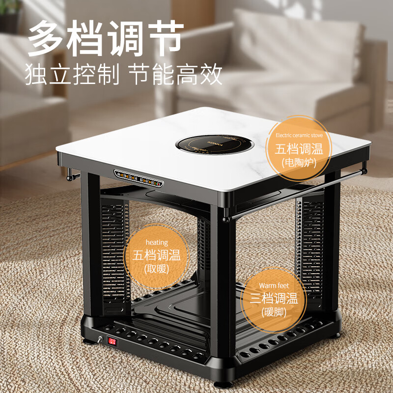 康佳电暖桌 取暖茶几升降取暖桌烤火桌正方形客厅电热取暖桌家用省电多功能电暖炉电炉电茶几取暖器 65厘米岩石白+不挑锅电陶炉+暖脚+晾衣杆