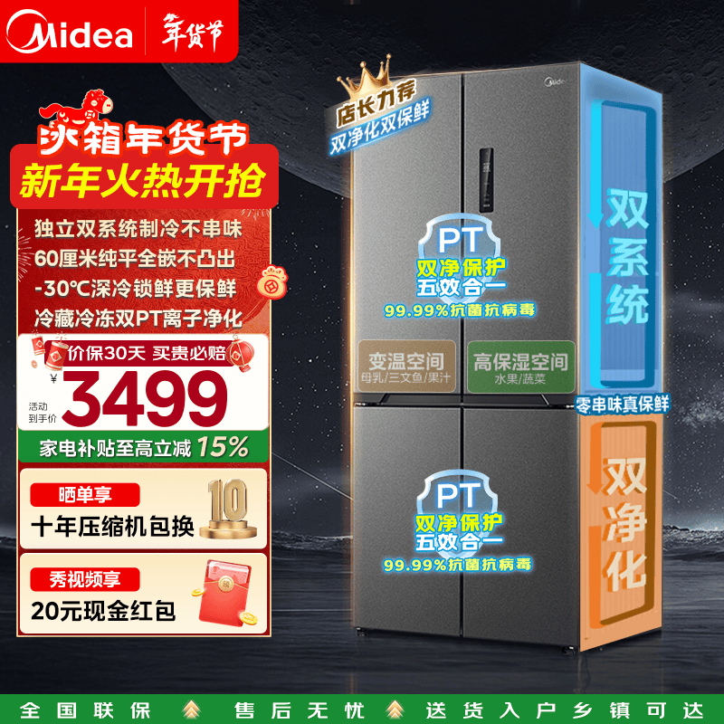 美的冰箱旗舰店手机扫码,领券购买