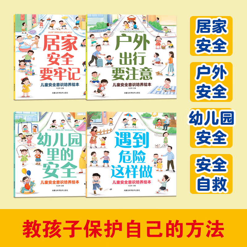 儿童安全意识培养绘本全4册 居家户外幼儿园危险自我保护安全教育绘本3-6岁宝宝故事书幼儿大中小班自救防护手册安全常识知识书籍 遇到危险这样做