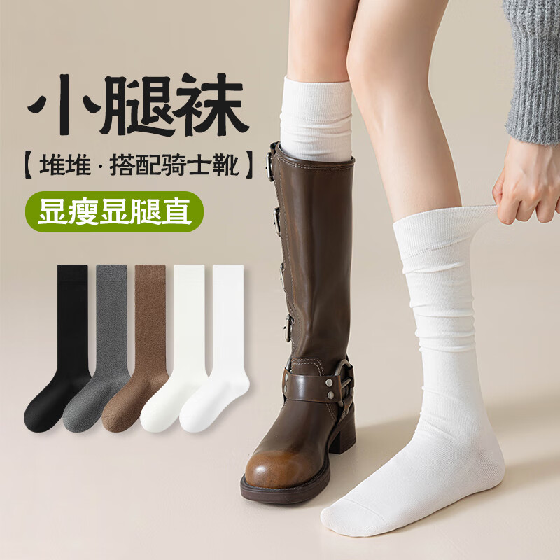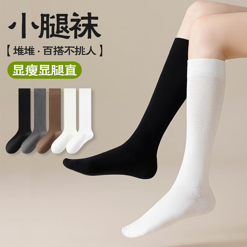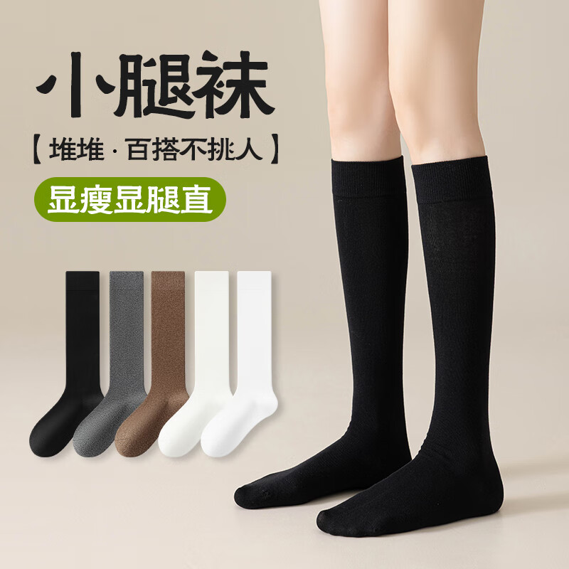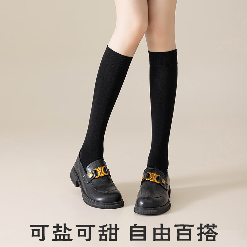 猫人2双小腿袜女秋冬季压力棉jk中长筒长袜黑色及膝袜女士搭配骑士靴