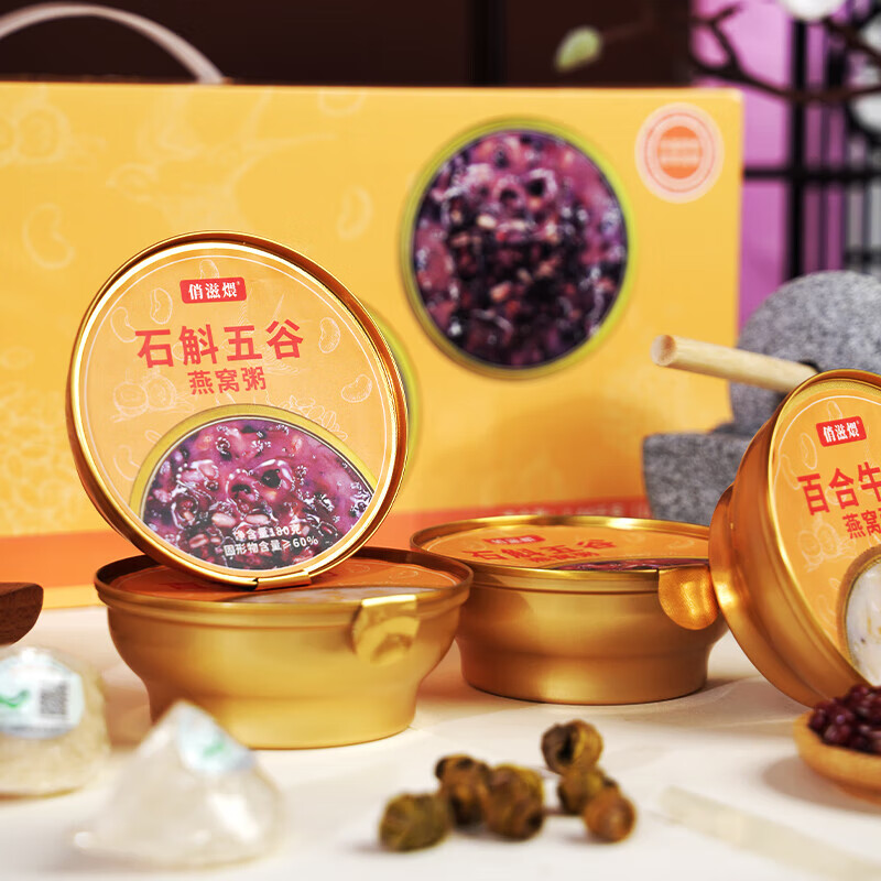 【盒马同厂】燕窝粥百合牛奶石斛五谷燕窝粥即食免煮早餐速食粥 石斛五谷燕窝粥 180g*1碗 1箱约2200克【单碗约200克】