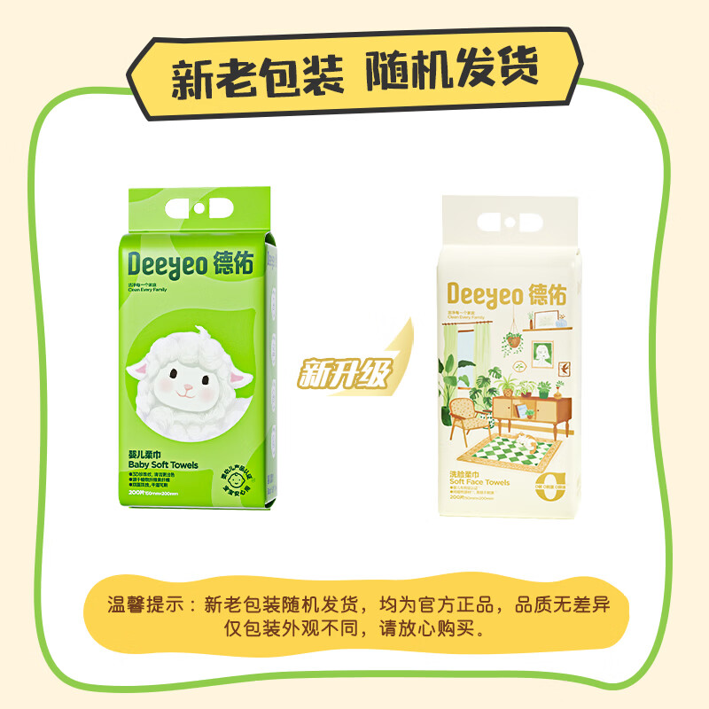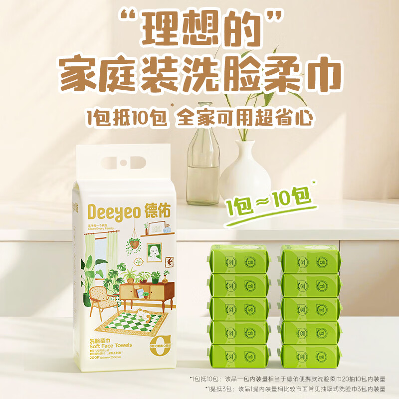 德佑悬挂式洗脸巾200抽*4提 家庭装大包加量加厚擦脸巾绵柔洁面巾纸