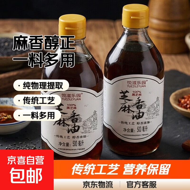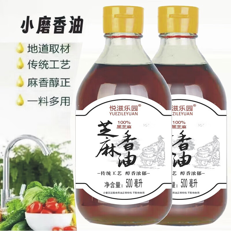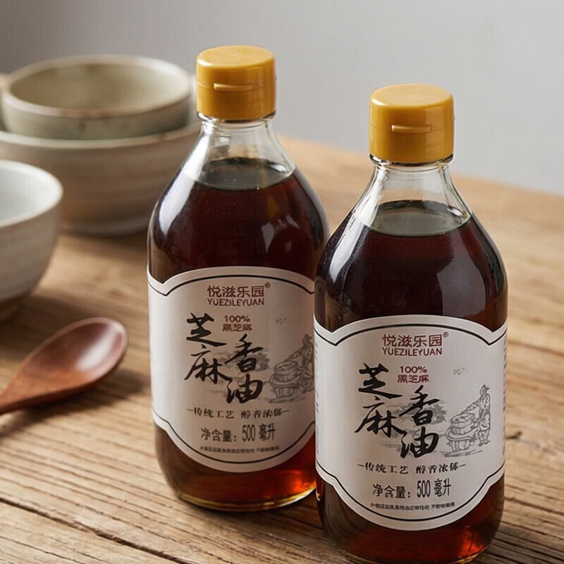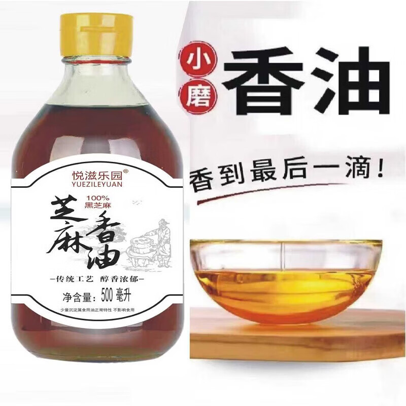 【玻璃瓶】芝麻香油100%纯黑芝麻油火锅蘸料拌菜拌面家用调味 500ml*1 黑芝麻油