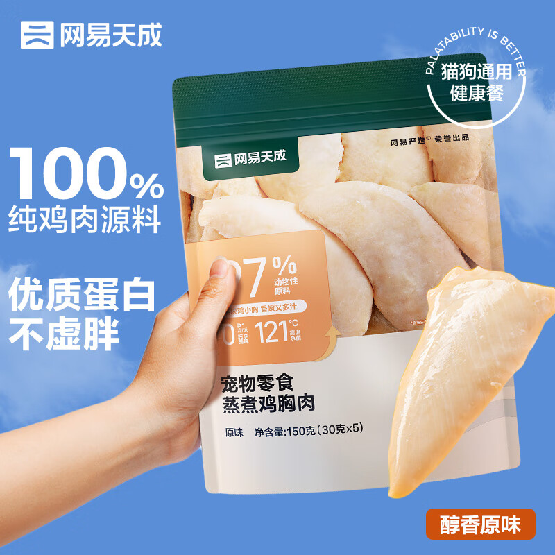 网易严选蒸煮鸡胸肉猫零食成猫幼猫通用 原味30g*5袋
