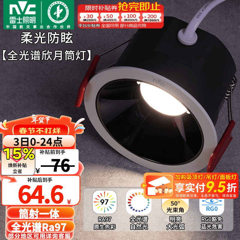 雷士照明官方旗舰店手机扫码,领券购买