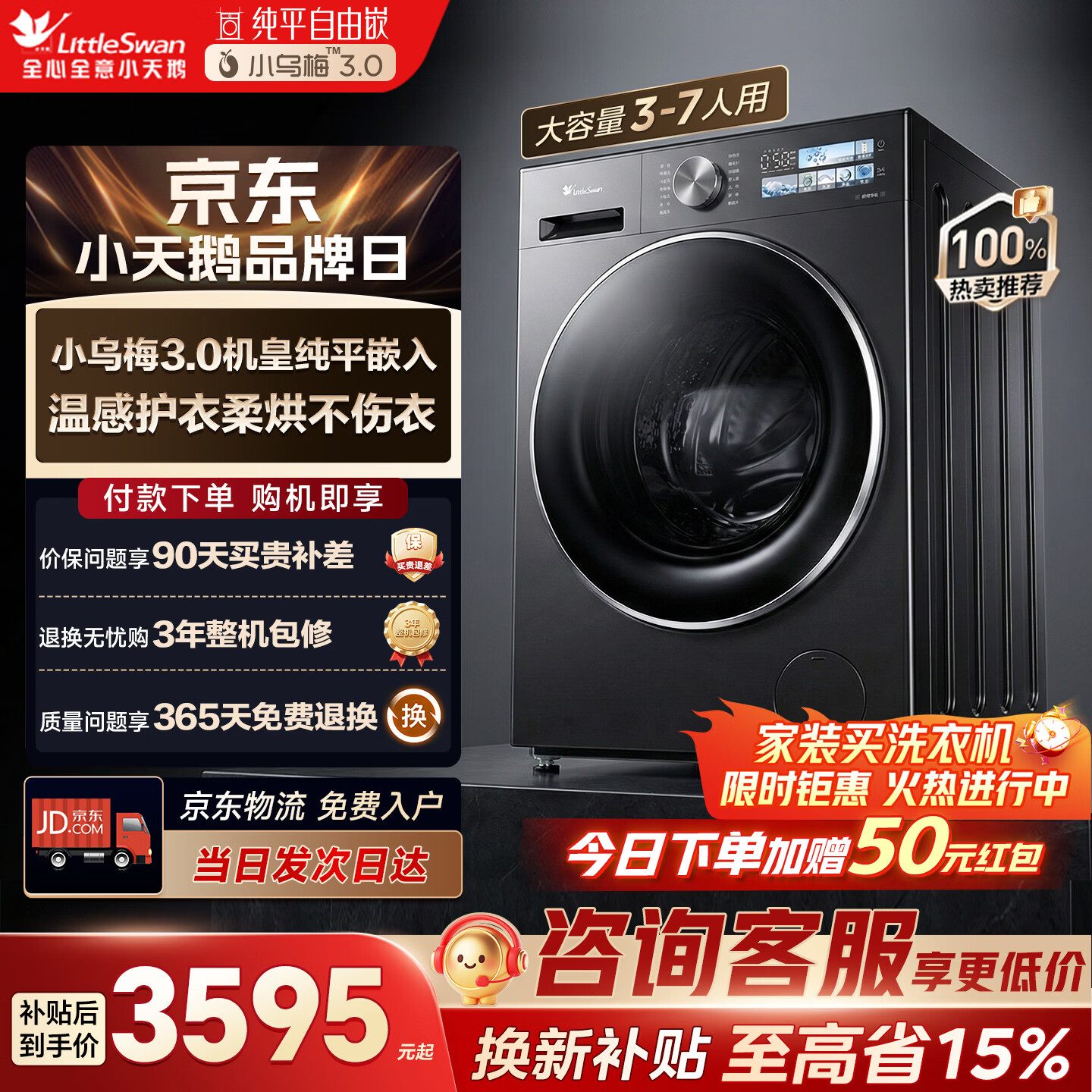 小天鹅洗烘京东自营旗舰店手机扫码,领券购买