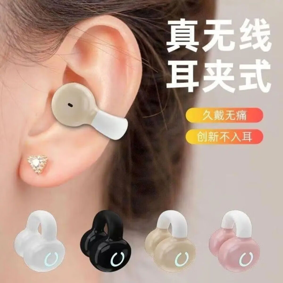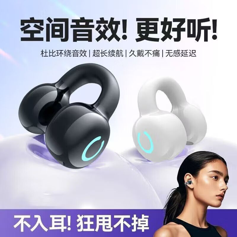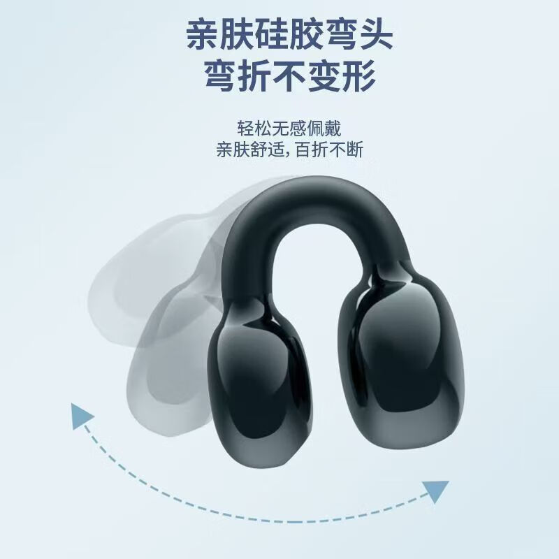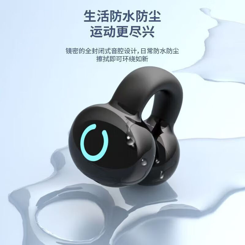新款高颜值办公室用夹耳式无线蓝牙耳机骨传导概念不入耳开放式挂耳式通话降噪跑步运动耳机 黑色【单耳-左右耳通用】