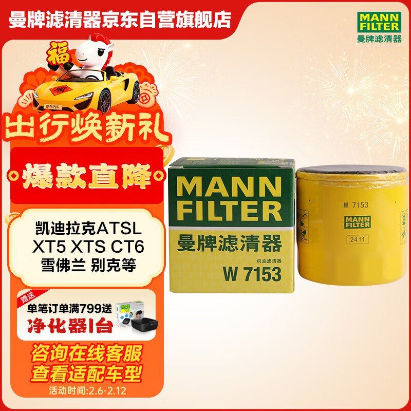 曼牌滤清器(MANNFILTER)机油滤清器油滤芯W7056/W7153凯迪拉克君威君越GL8威朗昂科威吉普