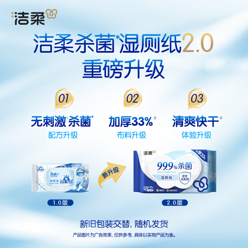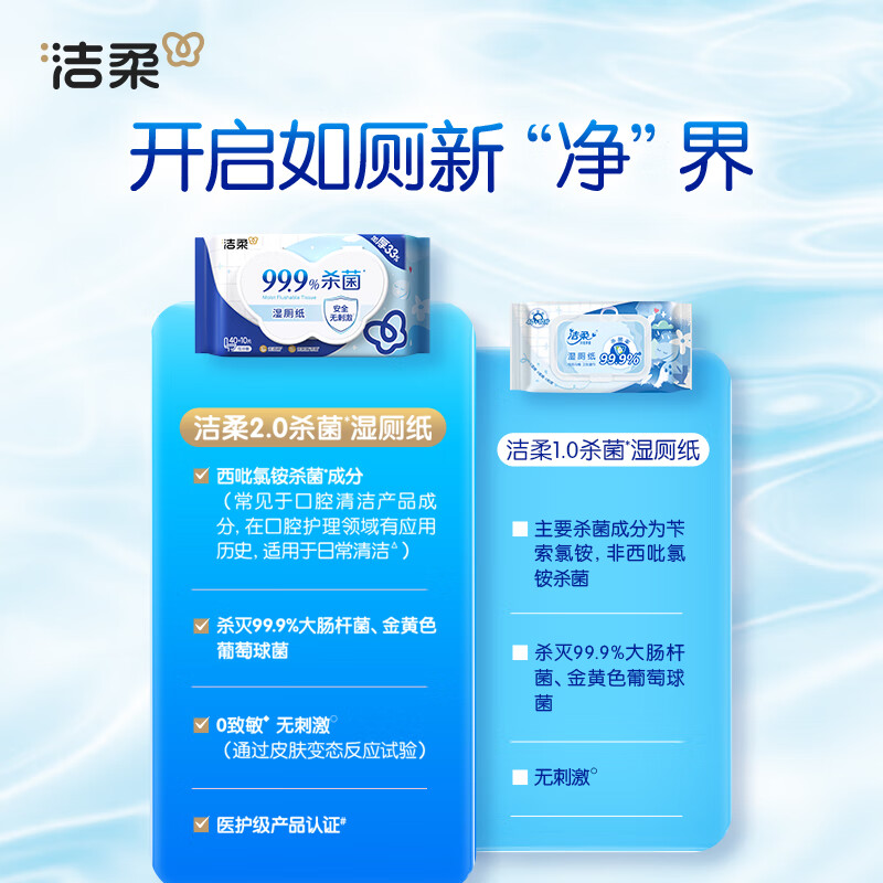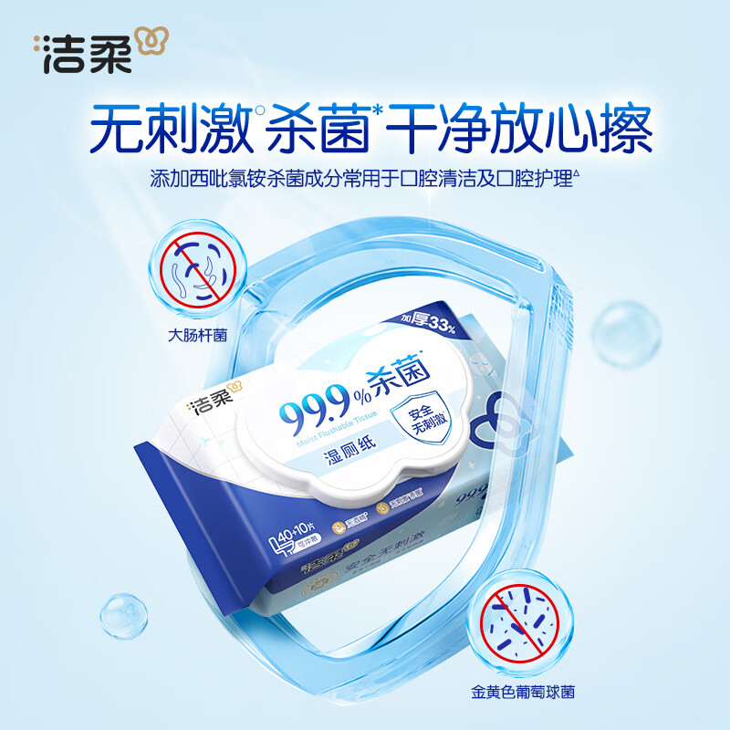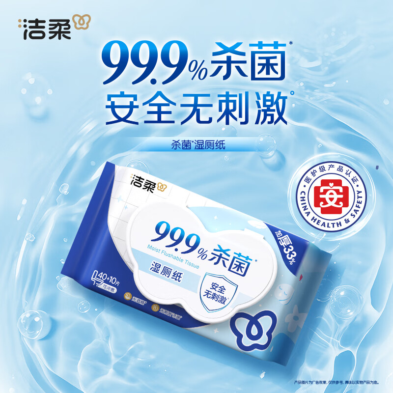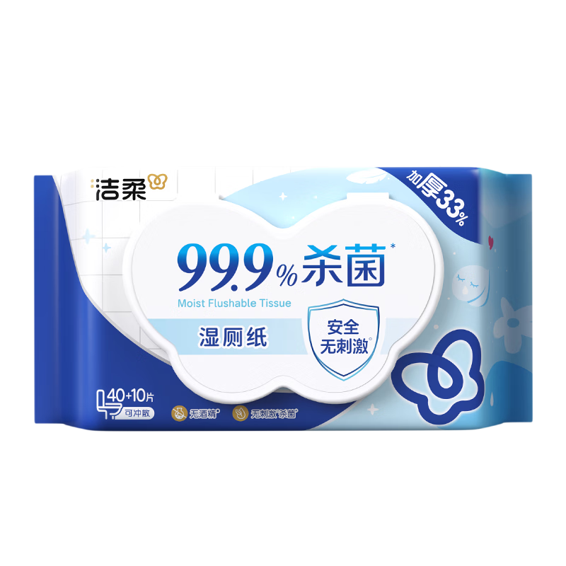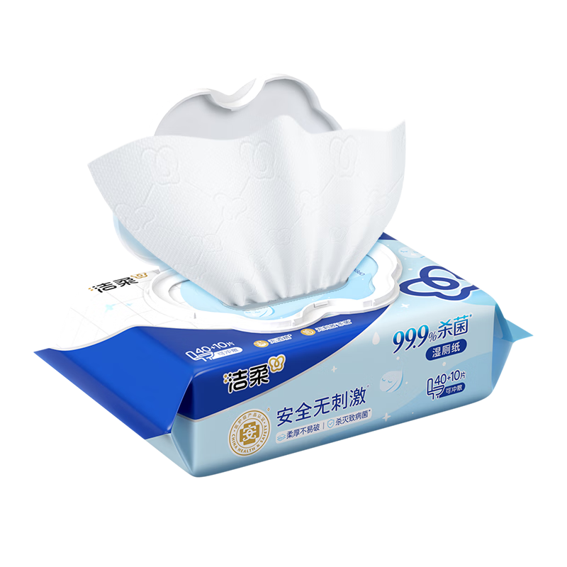 洁柔湿厕纸50抽*1包 擦除99.9%细菌抽取式湿巾私处卫生清洁湿巾