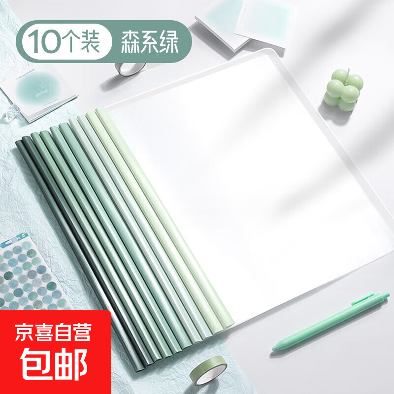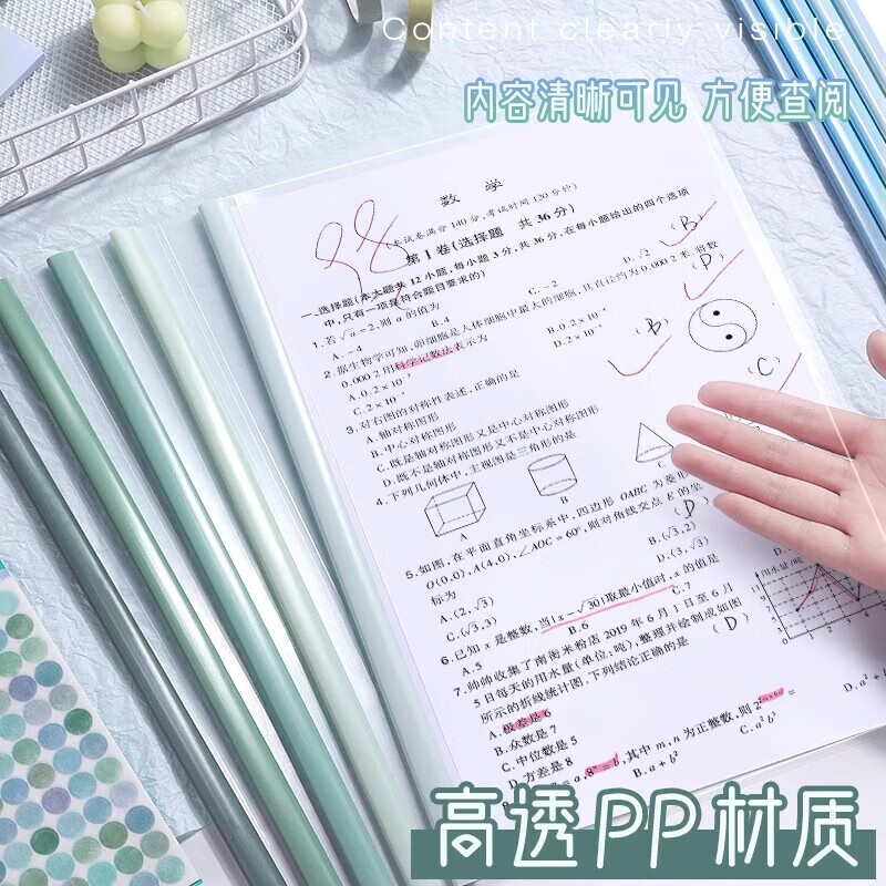 抽杆夹a4拉杆夹加厚透明文件夹书套书夹插页资料收纳固定书本单页夹办公用品学生大容量活页夹试卷 水滴杆【升级特厚】森系绿/10个