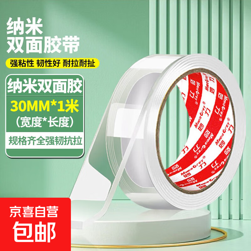 妙力MEEIAOREY纳米胶带强力纳米双面胶 不易留痕高粘度强力粘贴 居家汽车摆件用 透明纳米-宽30mm*1米(强力粘贴)
