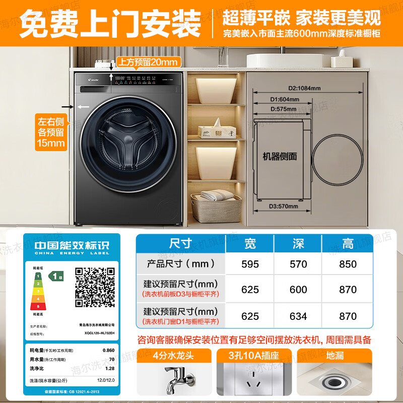 海尔洗衣机旗舰店手机扫码,领券购买