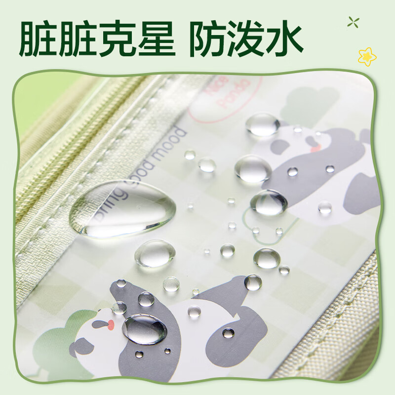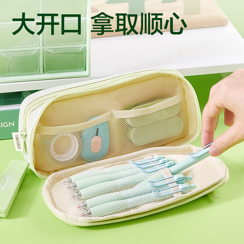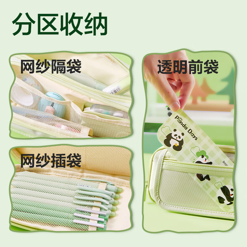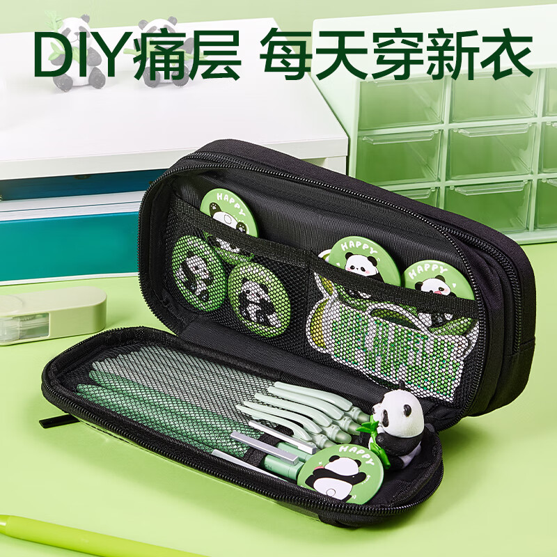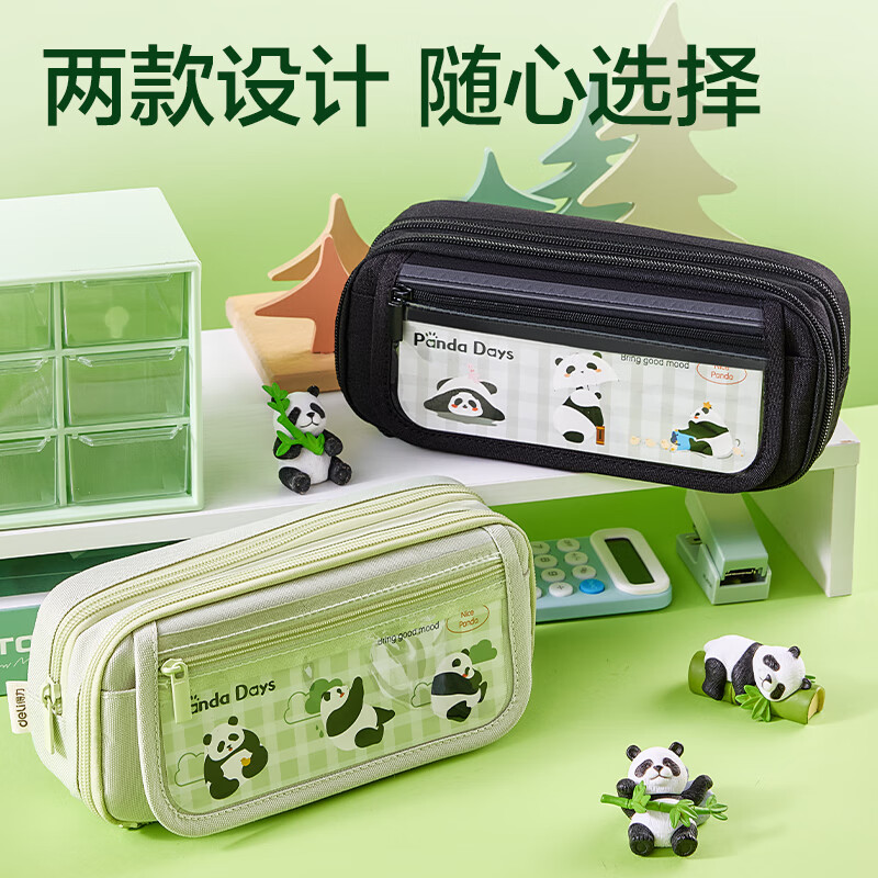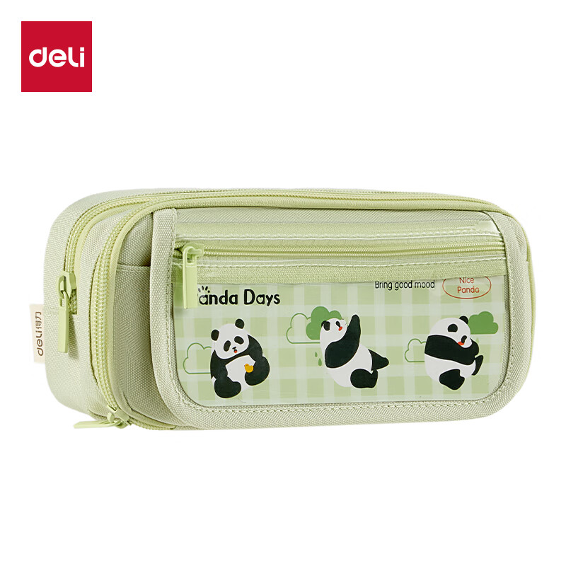 得力(deli)熊猫痛包学生笔袋 简约双拉链大容量铅笔盒多功能文具收纳袋 男孩女孩礼物绿BC435