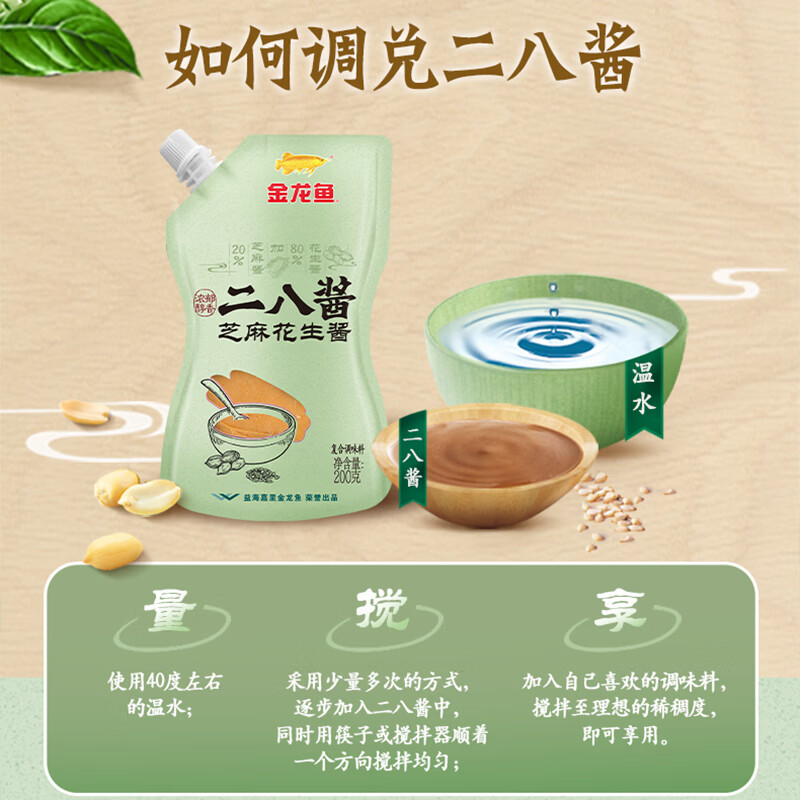 金龙鱼芝麻酱花生酱二八酱袋装家用商用烧烤火锅拌面蘸料调味料 3袋(赠3袋15g)