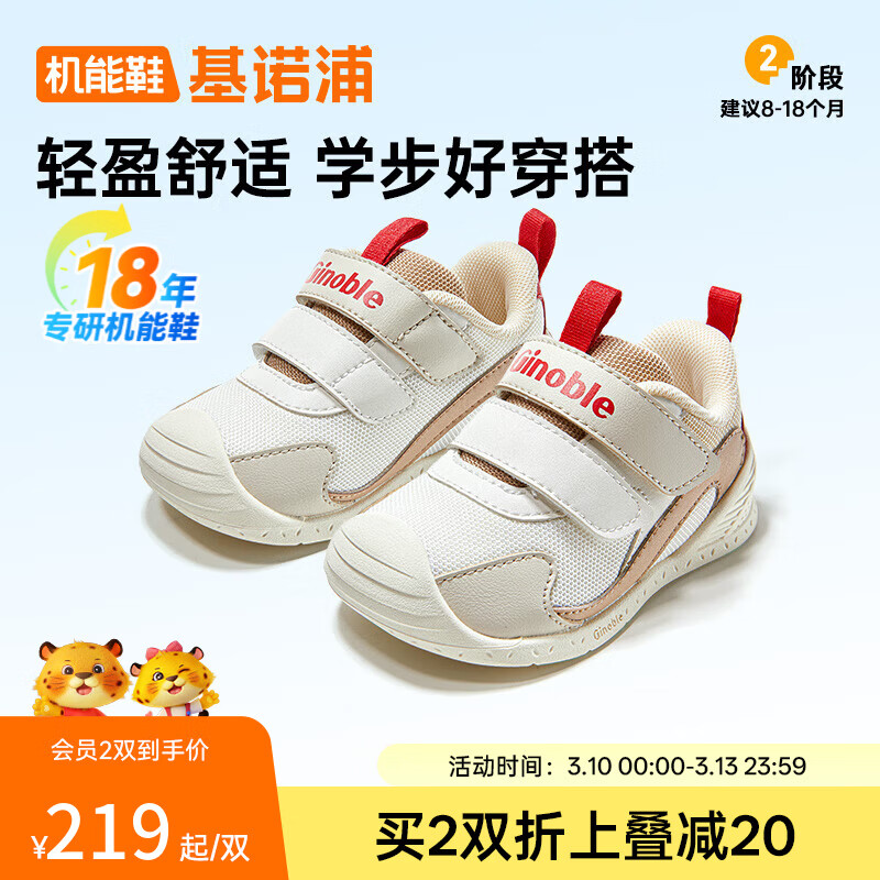 基诺浦(ginoble)步前鞋2026年春季新品男女童鞋0-1岁男宝宝鞋子GB2516 低语白_杏仁棕_火星红 19.5 120mm 适合脚长116-124mm