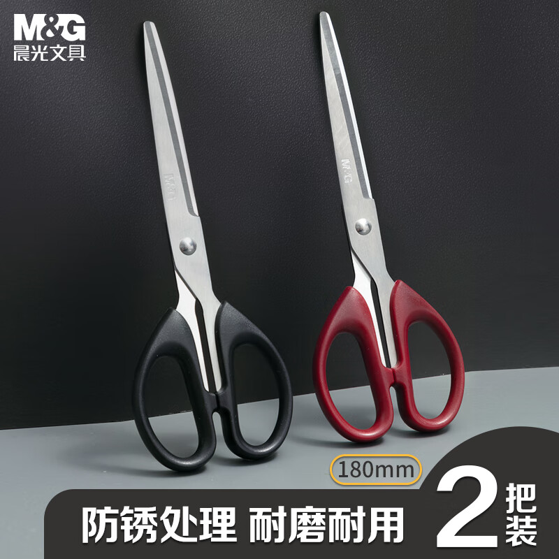 晨光(M&G)文具热门商品 180mm大号办公生活家用中号剪子 手工剪纸刀 办公用品 2把装 ASS913AP