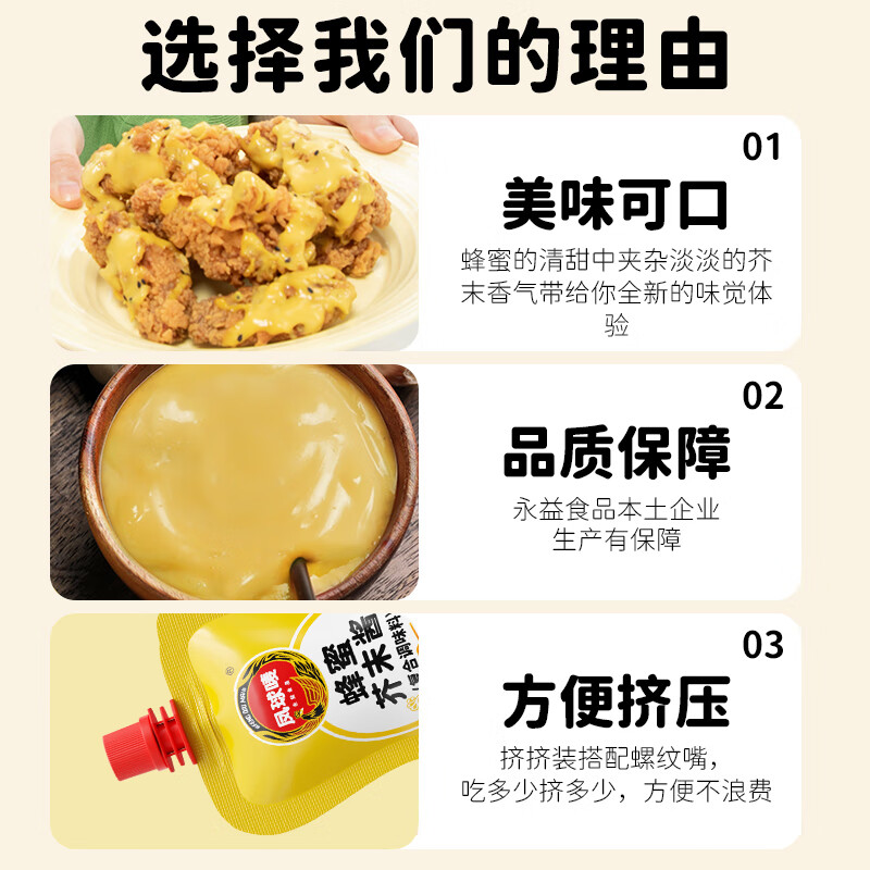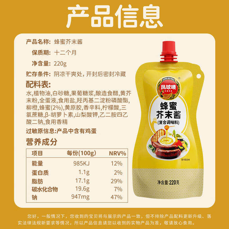 凤球唛蜂蜜芥末酱220g黄芥末沙拉酱韩式炸鸡汉堡三明治蘸酱汁