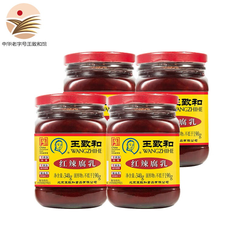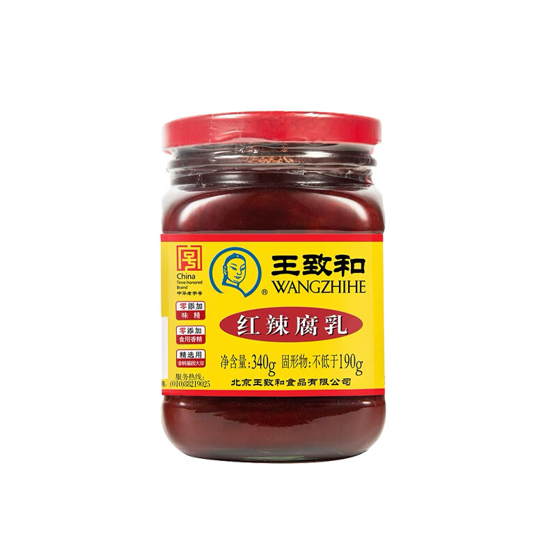王致和中华老字号 大块腐乳340g 经典红方 下饭菜 火锅蘸料 霉豆腐