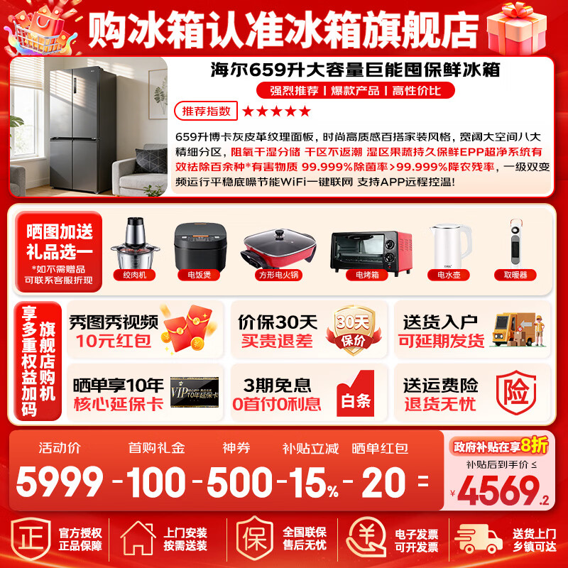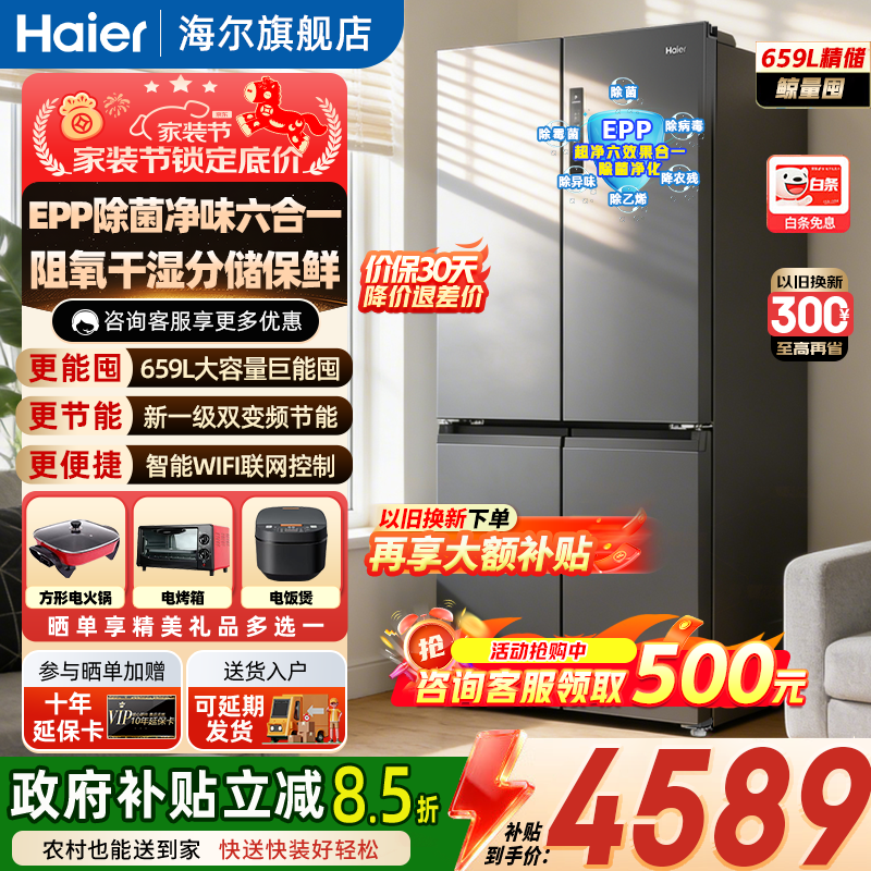 海尔双系统冰箱旗舰店手机扫码,领券购买