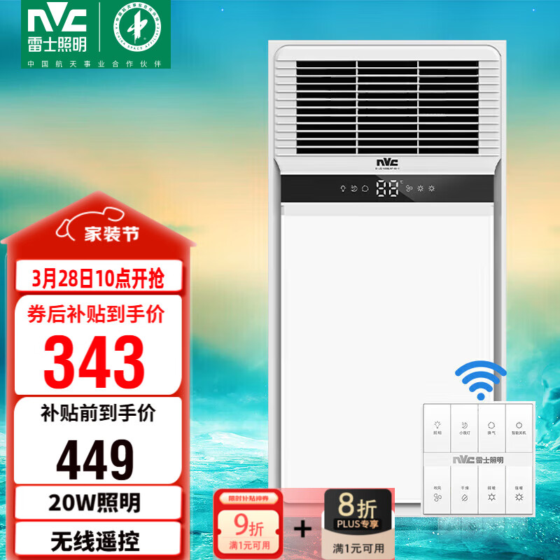 雷士(NVC)浴霸京东自营旗舰店手机扫码,领券购买